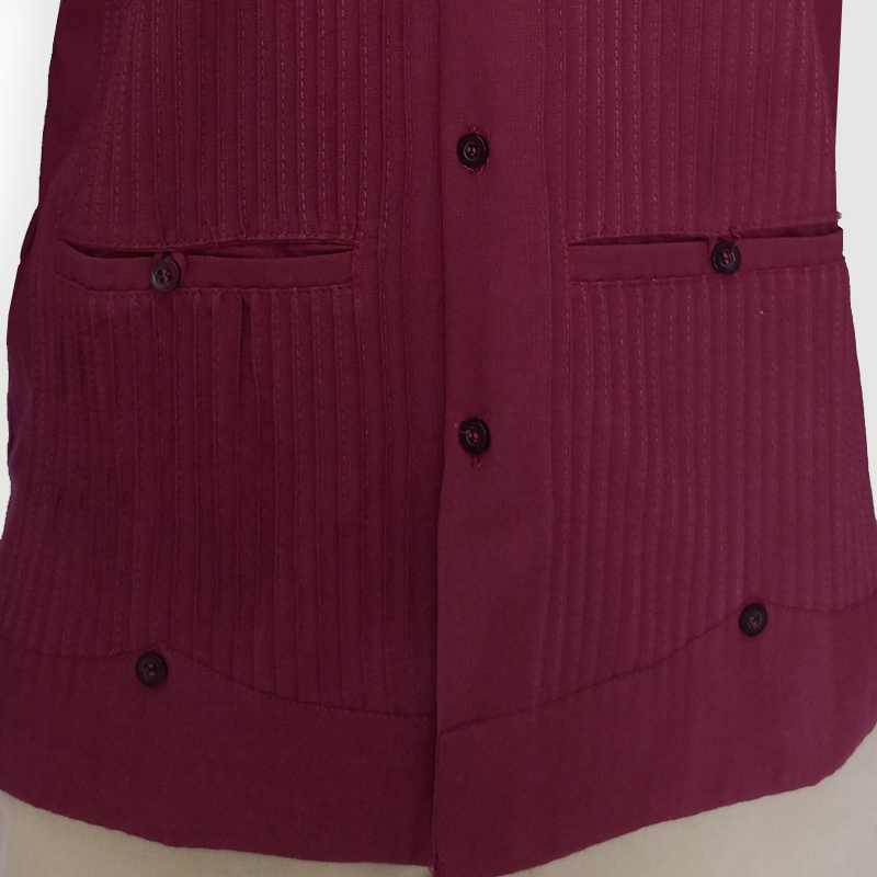 La guayabera bordeaux allie la sophistication du style latino à une touche contemporaine. Son ton profond et raffiné, entre rouge et vin, évoque l’élégance discrète et le caractère affirmé de l’homme moderne.